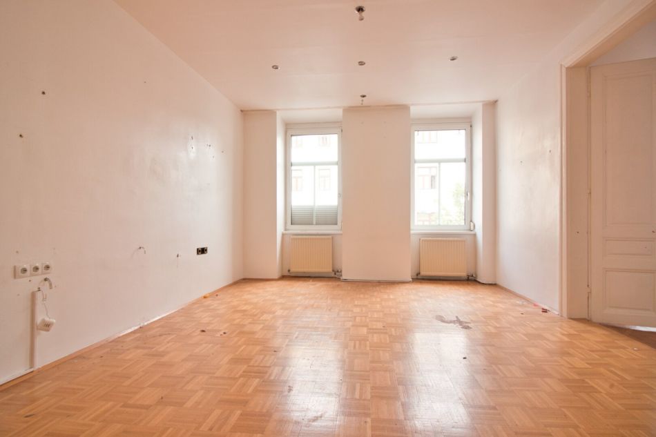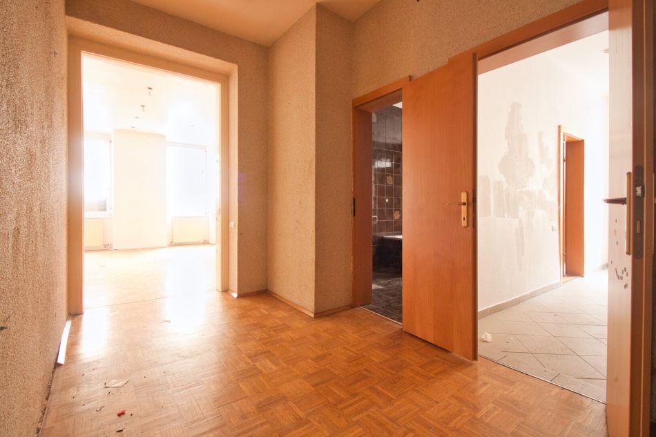Diese 2-Zimmer-Wohnung befindet sich in einem klassischem Altbau im 1. Stock OHNE Lift. Die Wohnung ist in einem teilweise sanierungsbedürftigen Zustand und leerstehend. Der Vorraum bietet viel Platz zum Ankommen und für eine Garderobe. Direkt beim Eingang befindet sich ein separates WC mit Fenster.