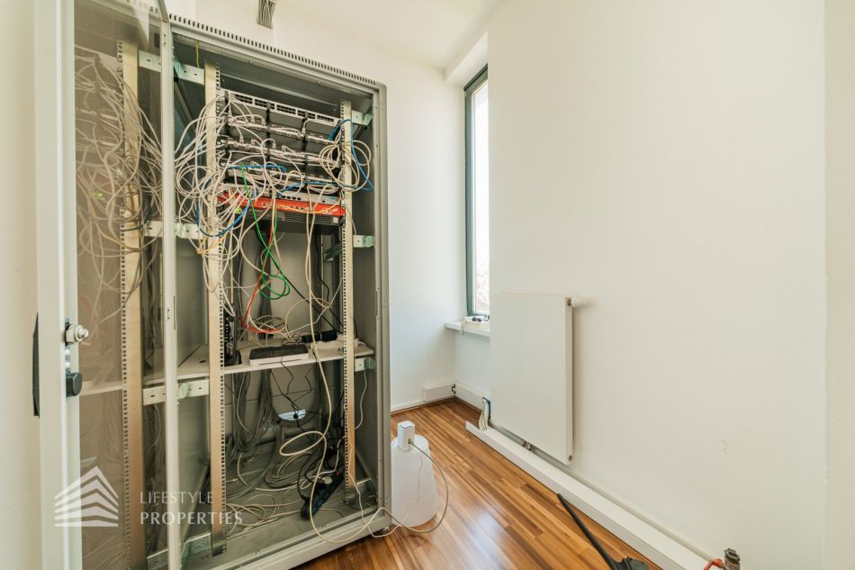 Aus dem großzügigen Vorraum gelangt man in den 1. großen Raum in welchem sich links genügend Platz für eine Ablagefläche/Aktenschränke oder anderes bietet. Rechts geht es in die weiteren Räume welche nacheinander angelegt sind und mit modernen Glaselementen getrennt wurden und so genügend Licht durchlassen. Die zwei Toiletten befinden sich in der Mitte. Die praktische Teeküche lässt sich direkt aus dem Vorraum betreten.
