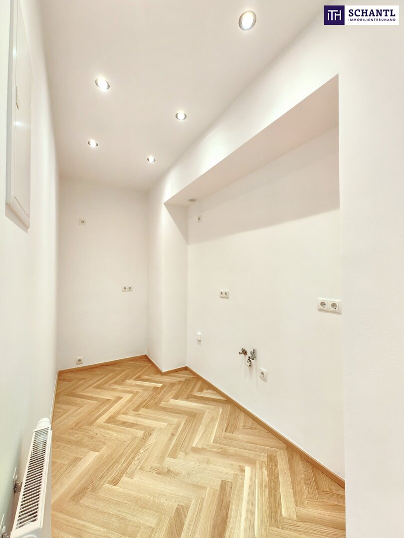 Im Zuge der umfangreichen Sanierung wurde viel Wert auf einen praktischen und gut durchdachten Grundriss gelegt. Gleich im Eingangsbereich befinden sich das WC sowie das geschmackvolle Badezimmer. Bevor Sie das Wohnzimmer betreten, finden Sie noch die Küche sowie einen Abstellplatz für die Waschmaschine. Die beiden Schlafzimmer sind vom Wohnzimmer aus zu begehen und bieten viel Platz und Ruhe.