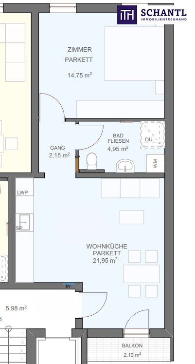 Wohnfläche 43,80 m² + 2,19 m² Balkon