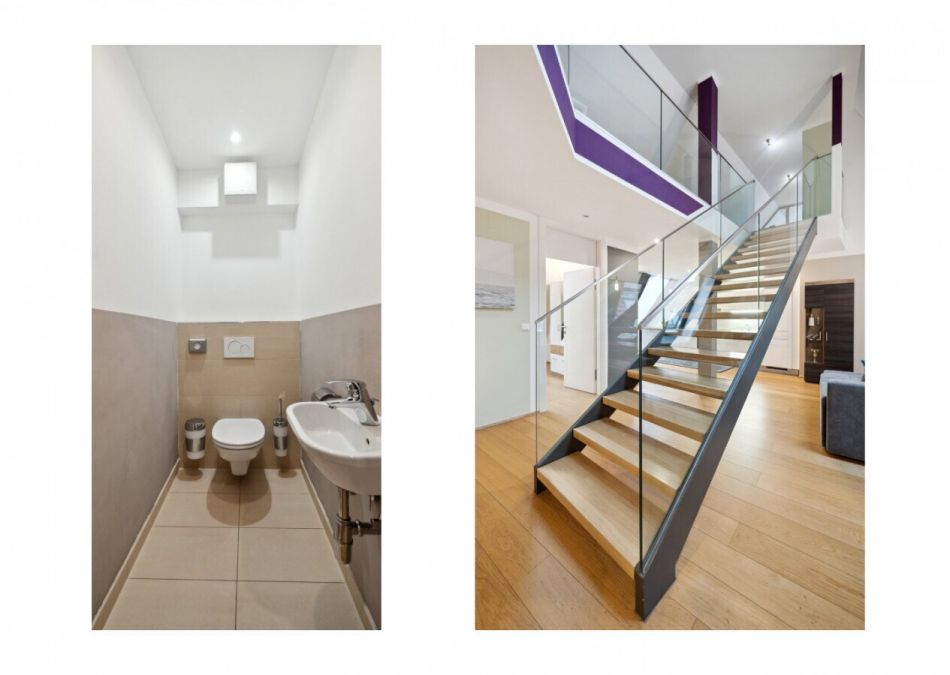 unteres Stockwerk: Vorraum, Abstellraum, Wohnzimmer inkl. Wohnküche, zwei separate (Schlaf)zimmer, Badezimmer, separates WC