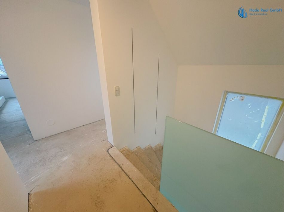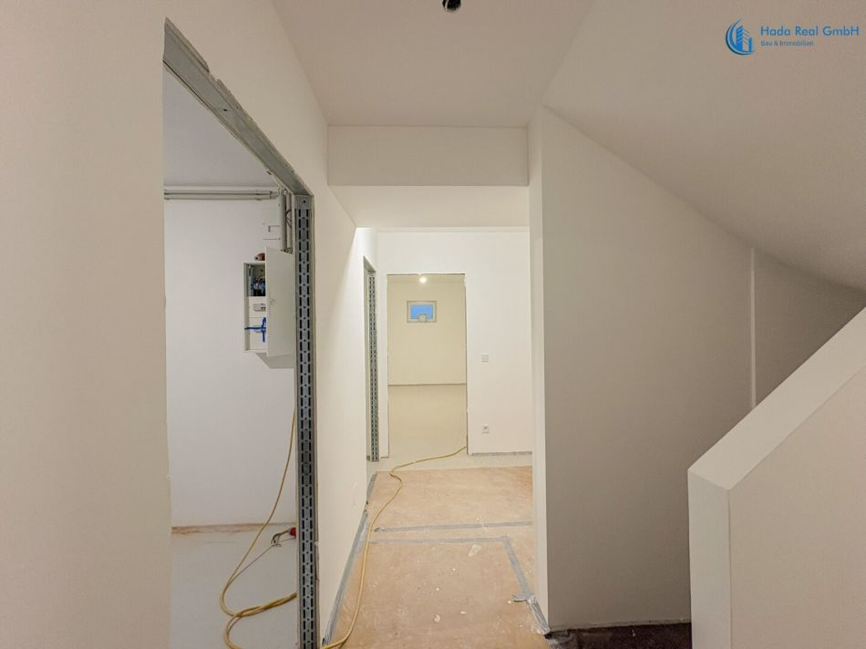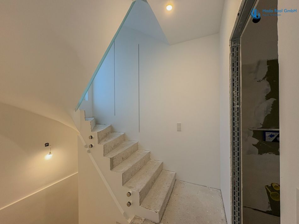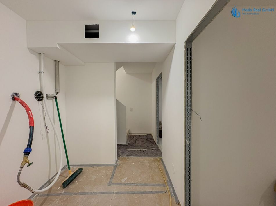 Im Innenbereich erfolgen noch die Fertigstellungsarbeiten der Oberflächen, insbesondere: Bodenbeläge (Parkett), Wand- und Bodenfliesen sowie die Montage der Innentüren. Diese Ausführung erfolgt im Rahmen der schlüsselfertigen Herstellung gemäß Bemusterung.
