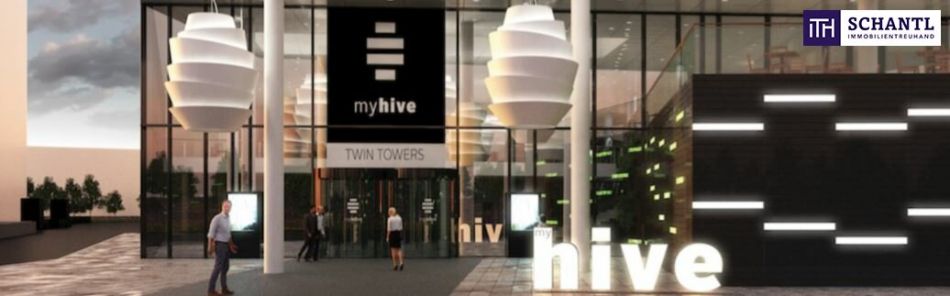 Flexibilität neu definieren! Auf einer Fläche von ca. 55.000 m² finden im myhive Twin Tower am grünen Wienerberg große Firmen, kleinere Unternehmen sowie Freelancer und Selbständige einen optimalen Arbeitsplatz, der viel Komfort bietet und dadurch effizientes Arbeiten ermöglicht.