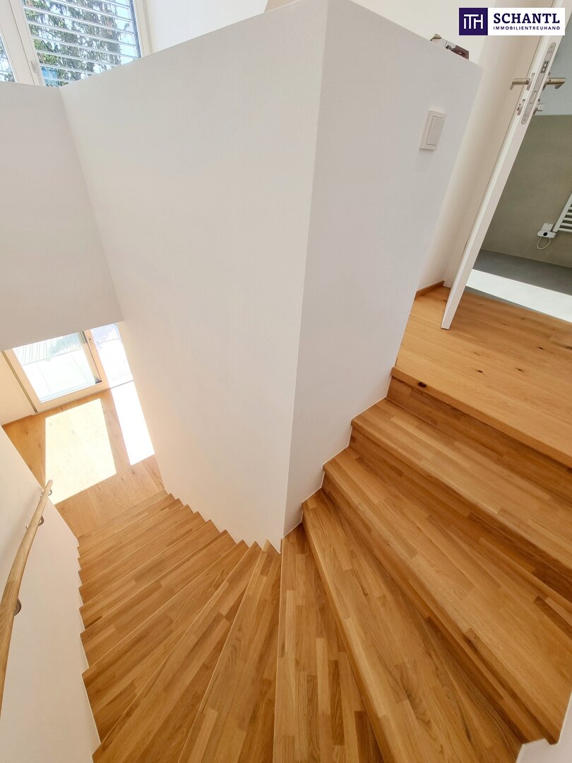 Ihre neue Wohnung wird Sie restlos begeistern und teilt sich in einen kleinen Vorraum mit praktischem Schrank- oder Abstellraum (Garderobe), einen lichtdurchfluteten Wohn-Essbereich mit Zugang zur Traumterrasse mit Fernblick, einen weiteren, raffinierten Abstellraum unter dem Treppenaufgang, ein separates WC mit Handwaschbecken, ein stylisches Badezimmer mit Walk-In Dusche und Waschmaschinenanschluss sowie ein gemütliches Schlafzimmer.