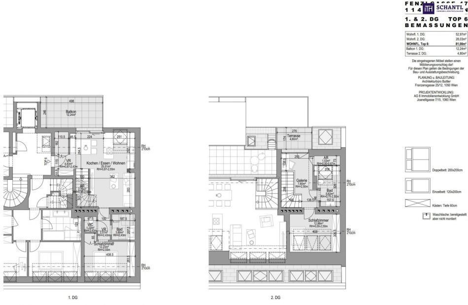 Auf der 2.Ebene erwartet Sie ein weiteres Schlafzimmer, ein 2.Badezimmer mit Fenster, 2.WC und Badewanne, ein kleiner Abstellraum sowie eine Galerie mit Zugang zu einer 2.Terrasse mit Blick auf Schloss Schönbrunn und die Gloriette.