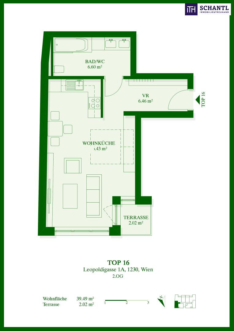 Wohnfläche: ca. 39,49m² + Loggia: ca. 2,02m²