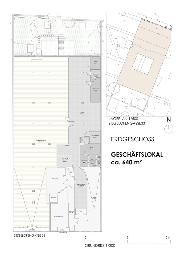 Eine Anlieferung ist über die Garagenzufahrt oder Rampe möglich. Die Innenräume können flexibel gestaltet werden, Lagerflächen sind im Haus vorhanden.