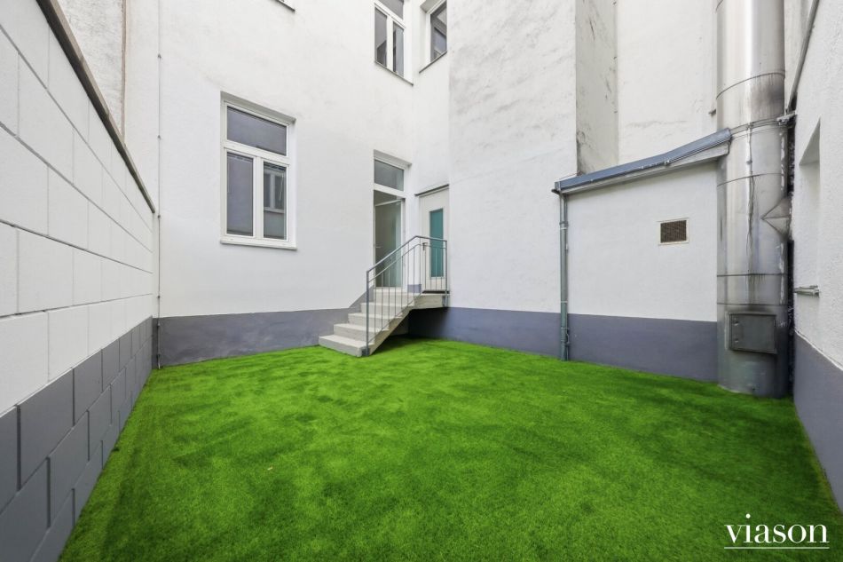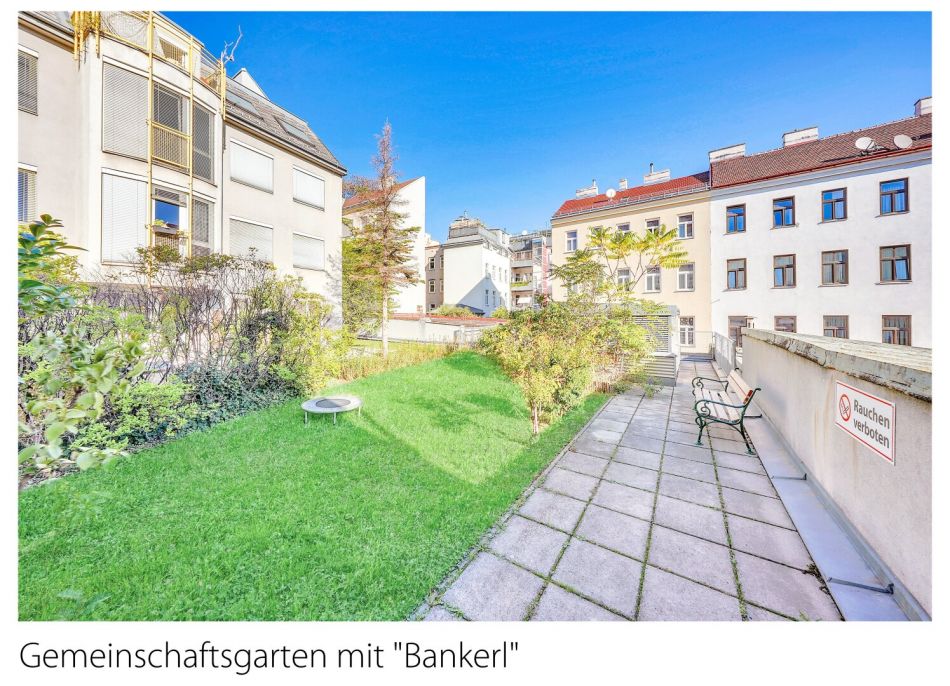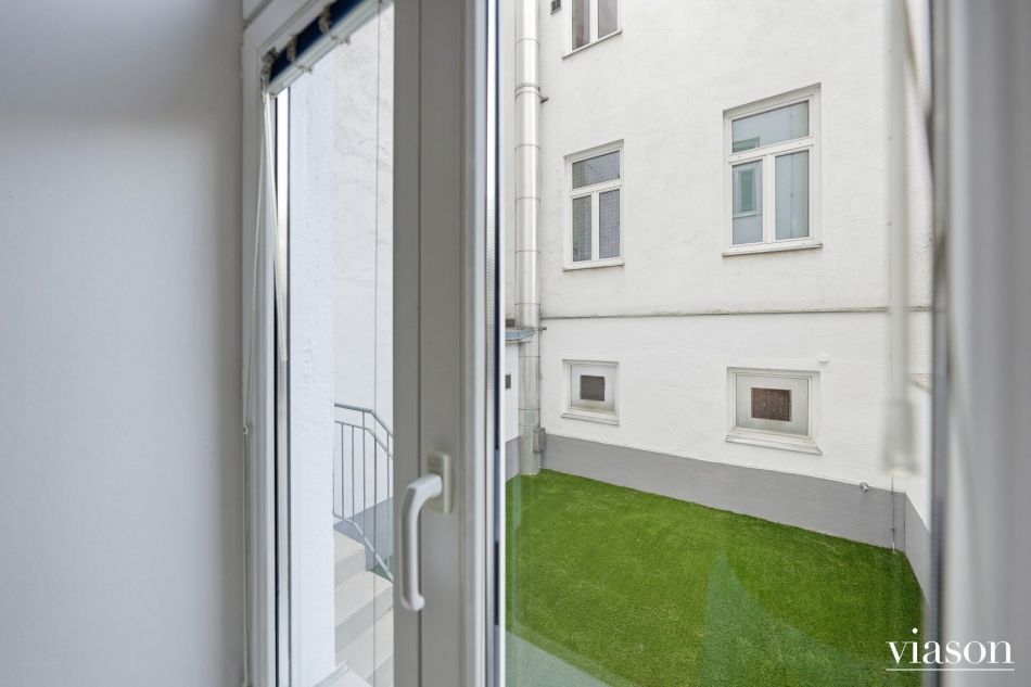 Die Wohnung befindet sich im Erdgeschoss eines klassischen Altbaus und bietet eine Wohnfläche von rund 72,60 m² und zusätzlich eine Terrasse von ca. 24,26 m². Sie ist südseitig zur Geblergasse sowie nordseitig zum Innenhof ausgerichtet. Das Wohnzimmer bietet einen direkten Zugang zur Terrasse im Innenhof, die über wenige Stufen erreichbar ist und einen angenehmen Rückzugsort im Freien darstellt.
