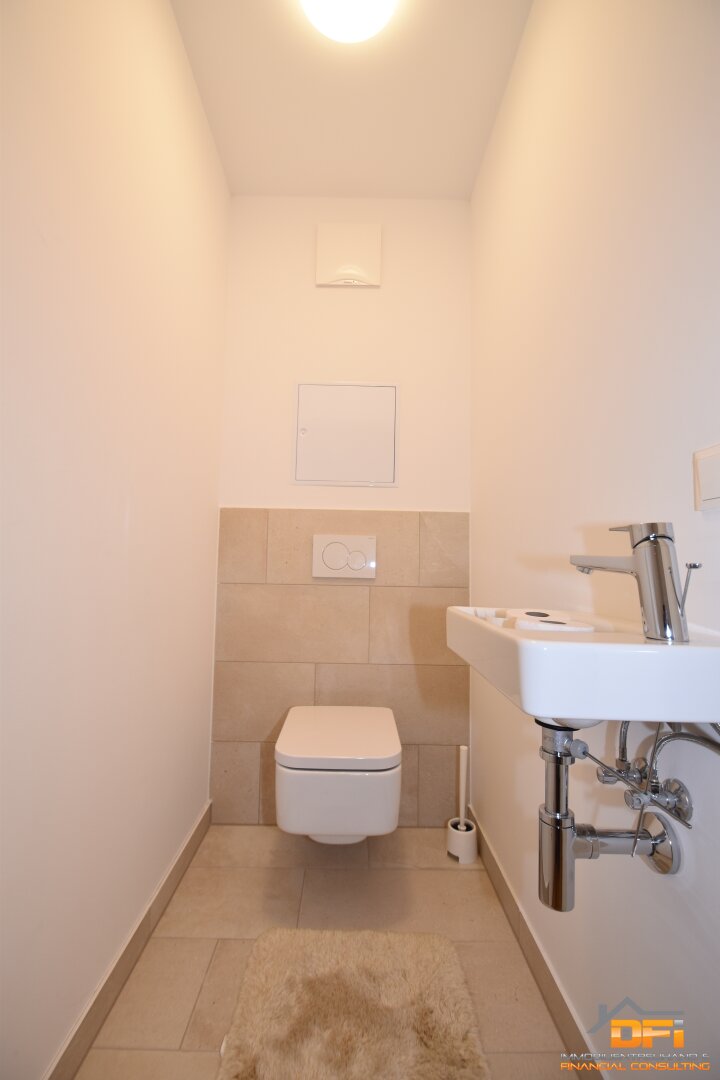 Toilette: Die Toilette ist direkt vom Vorraum aus zu begehen und mit einem Handwaschbecken ausgestattet.