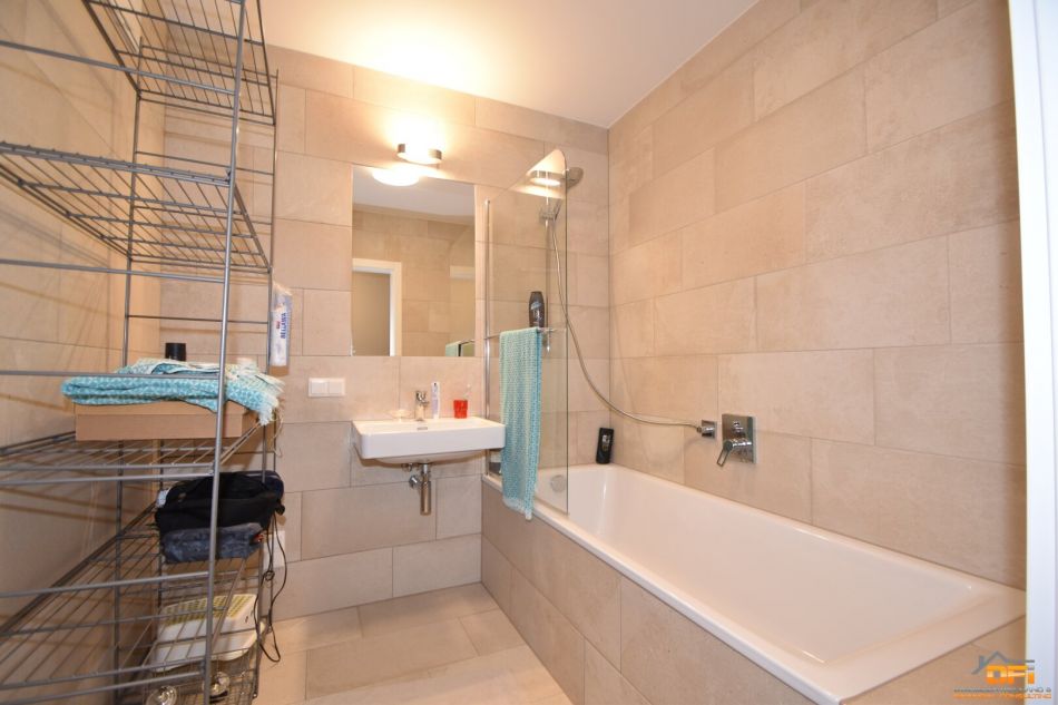 Bad: Das Badezimmer ist mit einer Badewanne ausgestattet und modern verfliest.