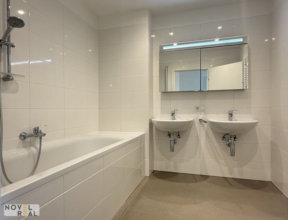 Die Wohnung empfängt Sie mit einem hellen, offenen Wohnbereich inklusive hochwertiger Wohnküche, die zum gemeinsamen Kochen und Verweilen einlädt. Für höchsten Komfort sorgt eine Klimaanlage sowie eine Badewanne im Badezimmer.