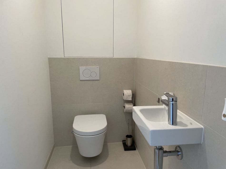 - hohe Materialqualität in den Sanitärräumen und modernste Sanitärtechnologie („Tornado-Flush“ im WC / spülrandlose Keramik)