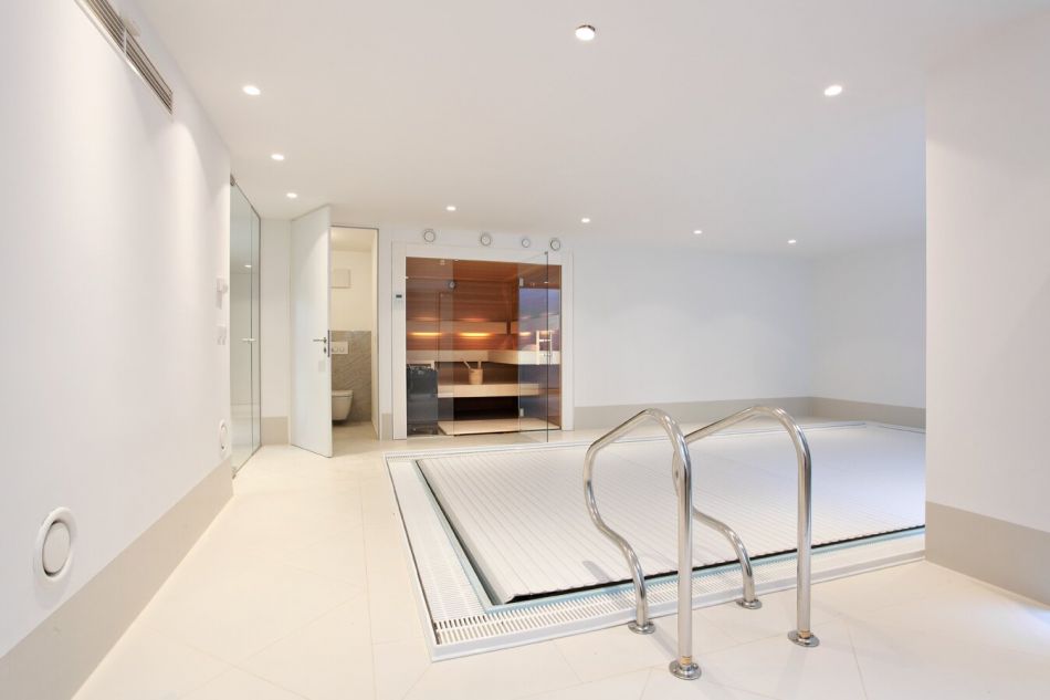 Der Wohnkeller bietet ein großzügiges Indoor-Pool, ausgestattet mit modernster Technik (Gegenstromanlage, Überlaufbecken, das für die Selbstreinigung des Wassers sorgt) sowie eine Sauna mit Dusch- und Toilettenanlage und einem kleinen Atrium. Ein Wäscheabwurfschacht bringt aus den Wohn- und Schlafräumen die Wäsche bequem in den ebenfalls im Keller befindlichen Wirtschaftsraum, der mit Anschlüssen für Waschmaschine und Trockengerät ausgestattet ist. Ein Heiz- und Technikraum (Erdwärme-Anlage), ein wandhoher Weinkühler, ein großer Wandtresor sowie diverse Abstellräume befinden sich ebenfalls in dem praktisch angelegten Keller und sorgen damit für ausreichenden Stauraum.