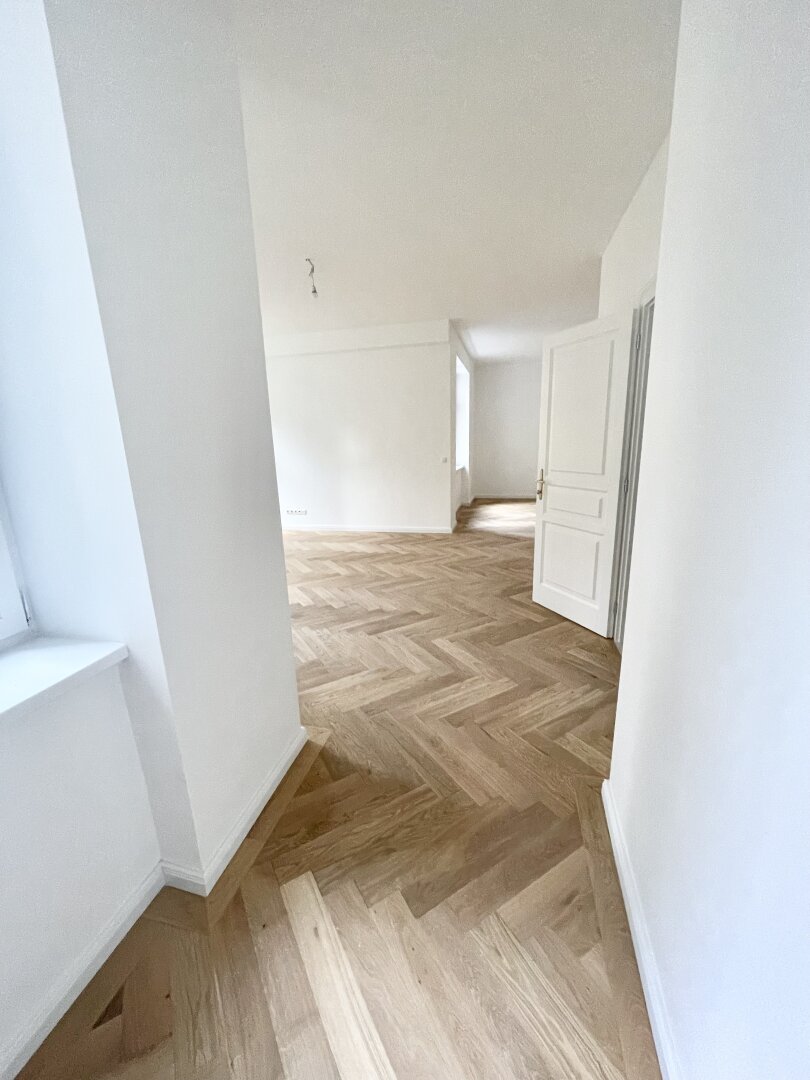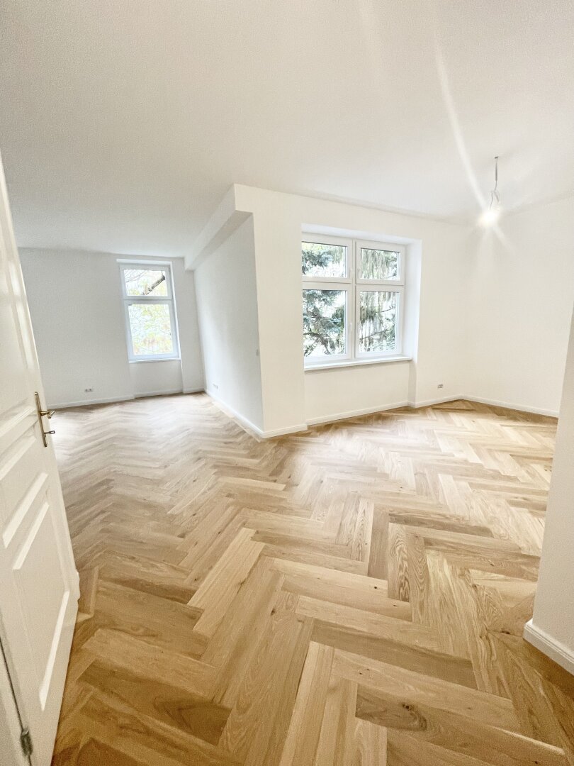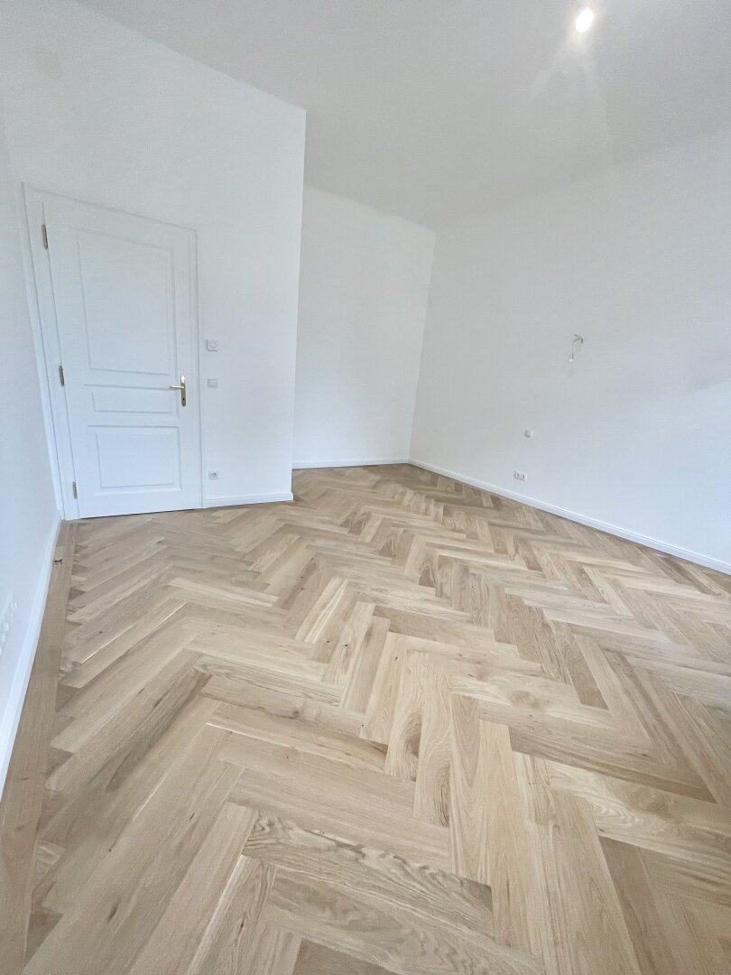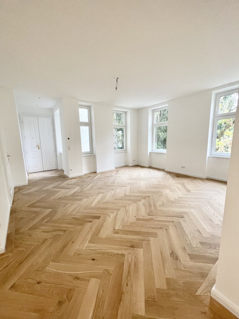 Bodenbelag: Ein Edler Eichen-Fischgrätparkett, der den klassischen Altbaucharakter elegant unterstreicht.