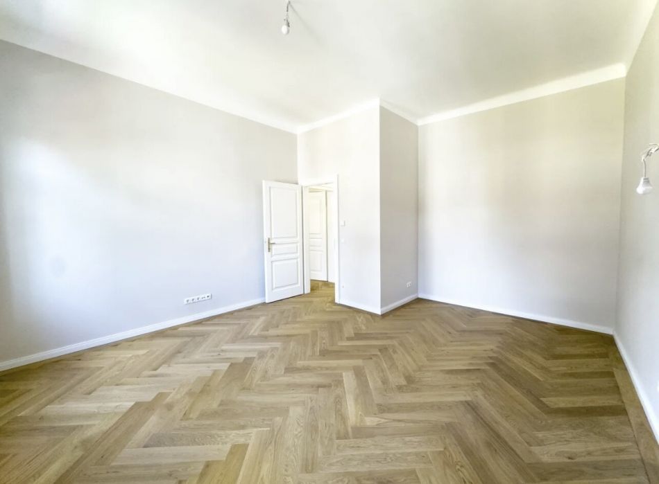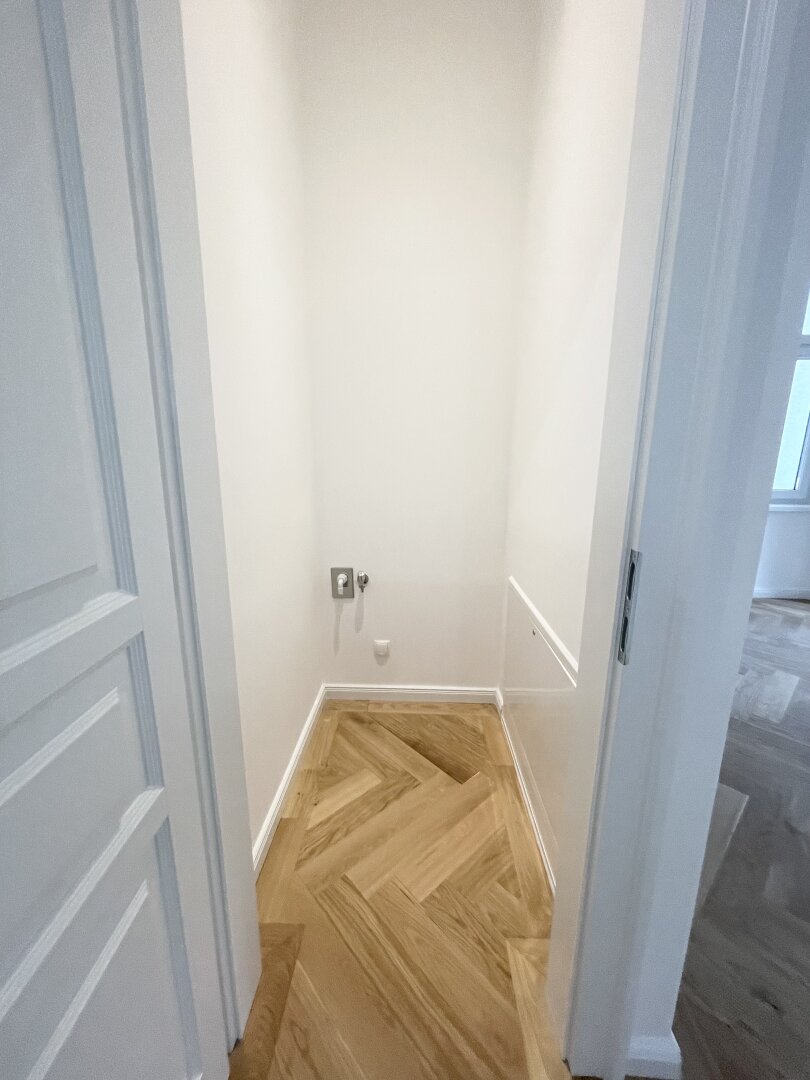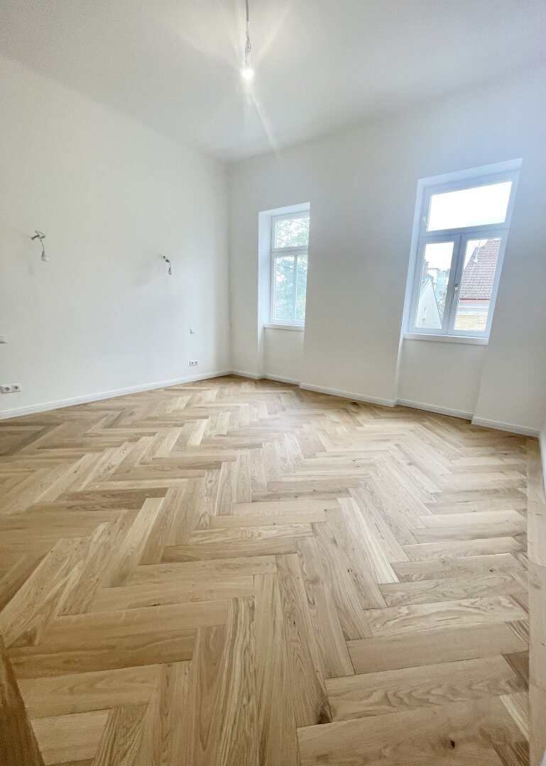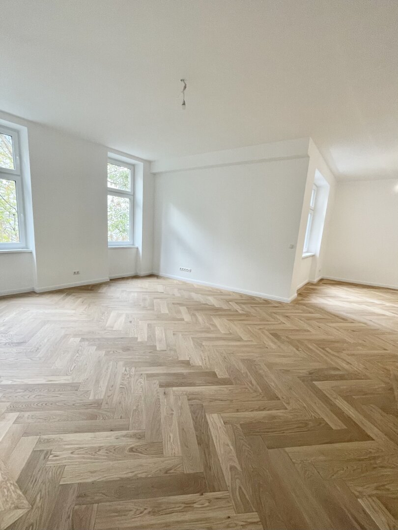 Bodenbelag: Ein Edler Eichen-Fischgrätparkett, der den klassischen Altbaucharakter elegant unterstreicht.