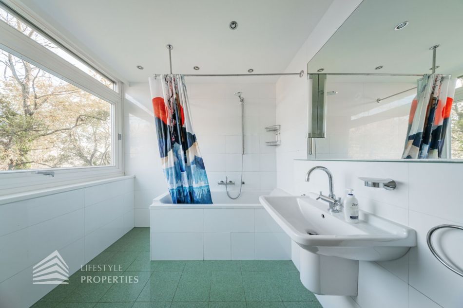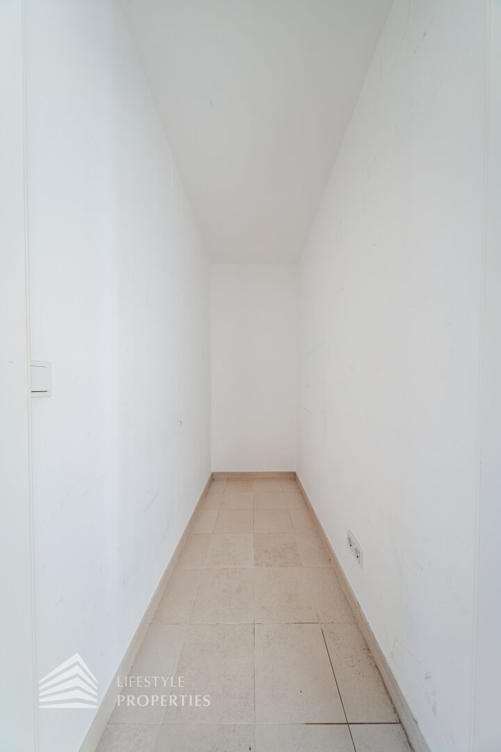 Sie betreten die Wohnung und befinden sich im Vorraum, der direkten Zugang zum großen Wohnraum bietet, von hier gelangen Sie auf einen der Balkone. Links durch den Vorraum gelangen Sie zur Küche und zu einem der Zimmer. Weiter im Gang befindet sich rechts eines der Badezimmer, welches mit einer Badewanne, einem Waschbecken und einem WC ausgestattet ist. Geradeaus gelangen Sie zu weiteren zwei der Zimmer und zum Wirtschaftsraum. Links gelangen Sie zum Master-Bedroom mit en-suite Badezimmer und Zugang zu einem Balkon. Von hier gelangt man außerdem auf die Terrasse und den schönen Garten. Im Vorraum befindet sich außerdem zwei Abstellräume und das separate WC.