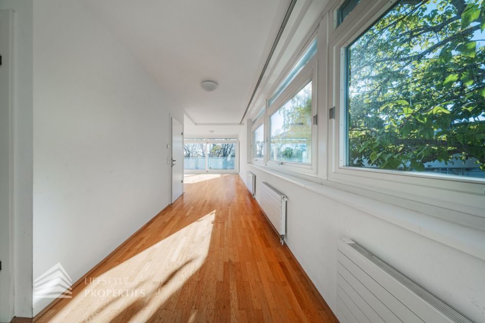 Zur unbefristeten Vermietung gelangt diese helle 5 - Zimmer Wohnung mit Terrasse und Garten im 19. Wiener Gemeindebezirk Döbling.Die Wohnung befindet sich in einem im Jahre 1966 erbauten Neubau, liegt im 1. Stock und ist bequem über einen Lift erreichbar. Sie verfügt über eine Größe von ca.193 m². Die Wohnfläche teilt sich in fünf Zimmer, eine Küche, zwei Badezimmer, ein Gäste-WC, sowie drei Abstellräume auf. Zusätzlich dazu bietet die Wohnung zwei Balkone, einen Garten und eine Terrasse.