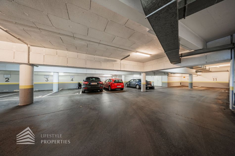 Für die Wohnungen stehen in den Tiefgaragen Parkplätze zur Verfügung zum Preis von €180,- brutto monatlich.