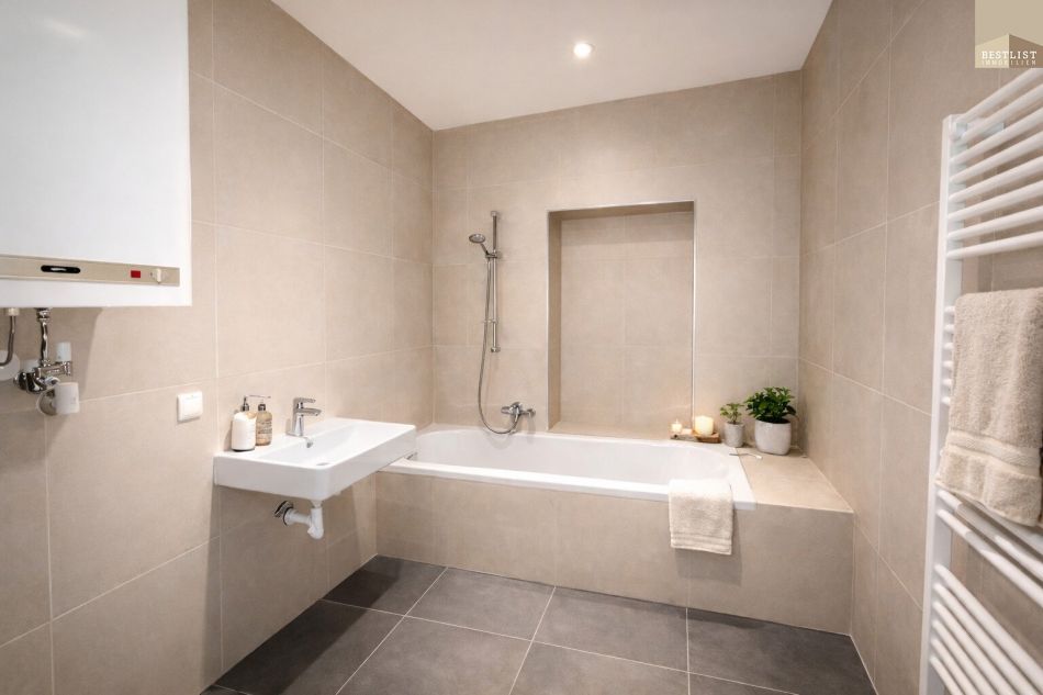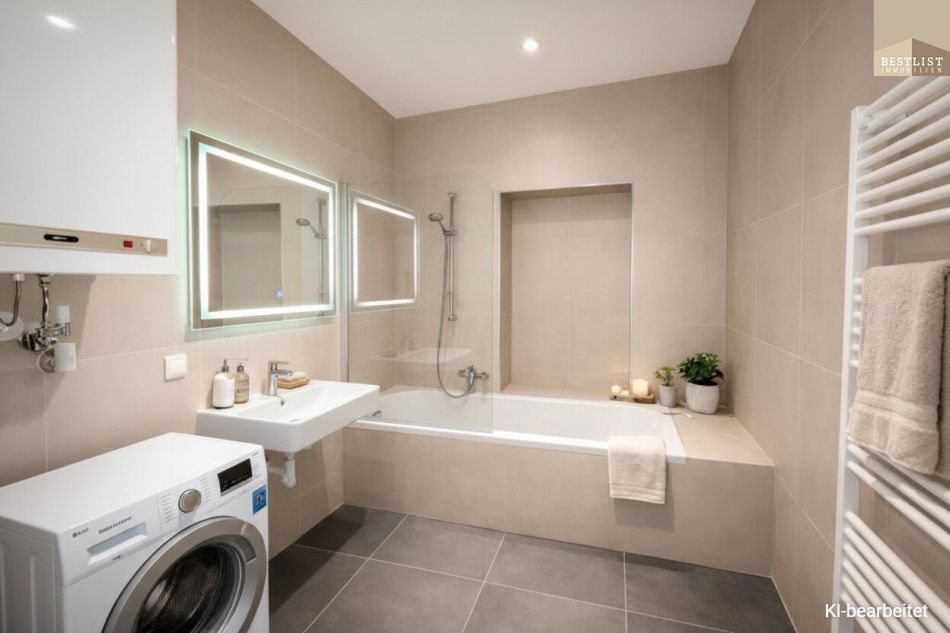Das modern ausgestattete Badezimmer mit Badewanne, ein separates WC sowie der Vorraum mit Stauraum unterstreichen die Alltagstauglichkeit dieser Immobilie.