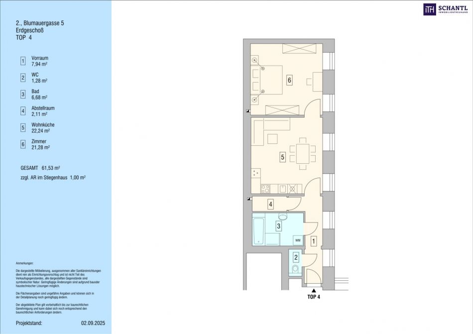 Sichern Sie sich schnell dieses großartige Immobilienangebot in einer der beliebtesten Lagen des 2. Bezirks nahe dem Augarten!Diese charmante 2-Zimmer-Wohnung in der Blumauergasse bietet Ihnen alles, was Sie sich für ein modernes und komfortables Leben wünschen. Mit einer großzügigen Fläche von ca. 62 m² und einem attraktiven Kaufpreis von 349.000,00 € ist dieses Angebot nicht nur eine Investition in Immobilien, sondern auch in Ihre Lebensqualität.