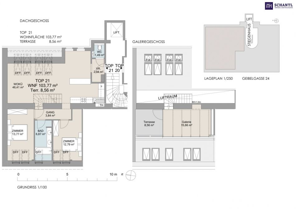 Ihre neue Wohnung im Dachgeschoss mit Ost-West Ausrichtung wird Sie begeistern und teilt sich auf der 1.Ebene in einen Vorraum mit Platz für eine Garderobe, ein separates WC mit Handwaschbecken, einen riesigen und lichtdurchfluteten Wohn-Essbereich mit Einbauküche und Aufgang zur 2.Ebene, ein großzügiges Badezimmer mit Waschmaschinenanschluss, Badewanne und Fenster sowie 2 getrennt begehbare Schlafzimmer.