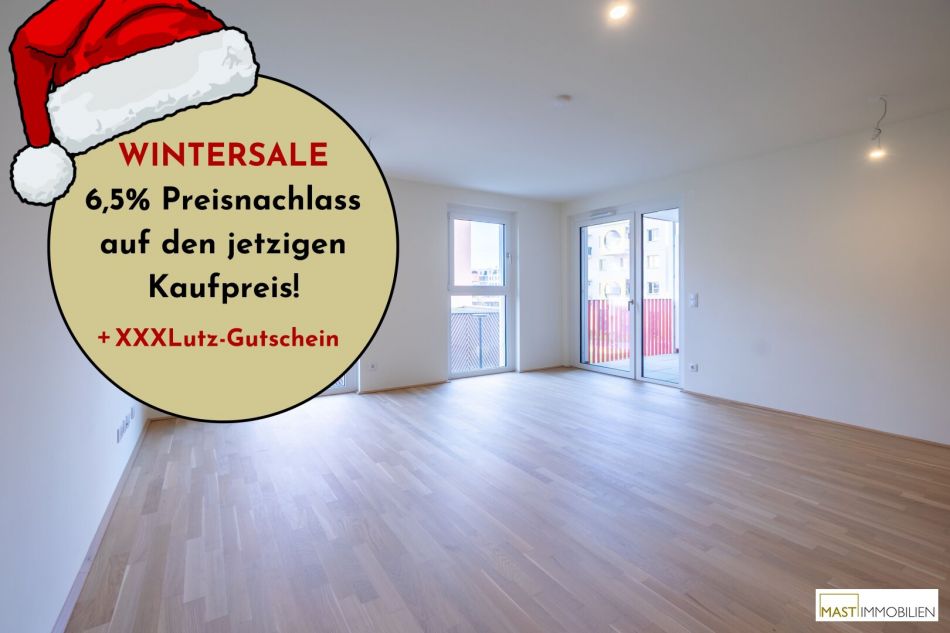 In der kalten Jahreszeit lassen wir die Preise schmelzen: Beim Kauf einer Eigentumswohnung in einem unserer Objekte in der Berresgasse ersparst du dir bis 31.3.2026 die Nebenkosten* und bekommst so jede Wohnung um 6,5% günstiger.