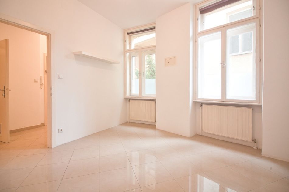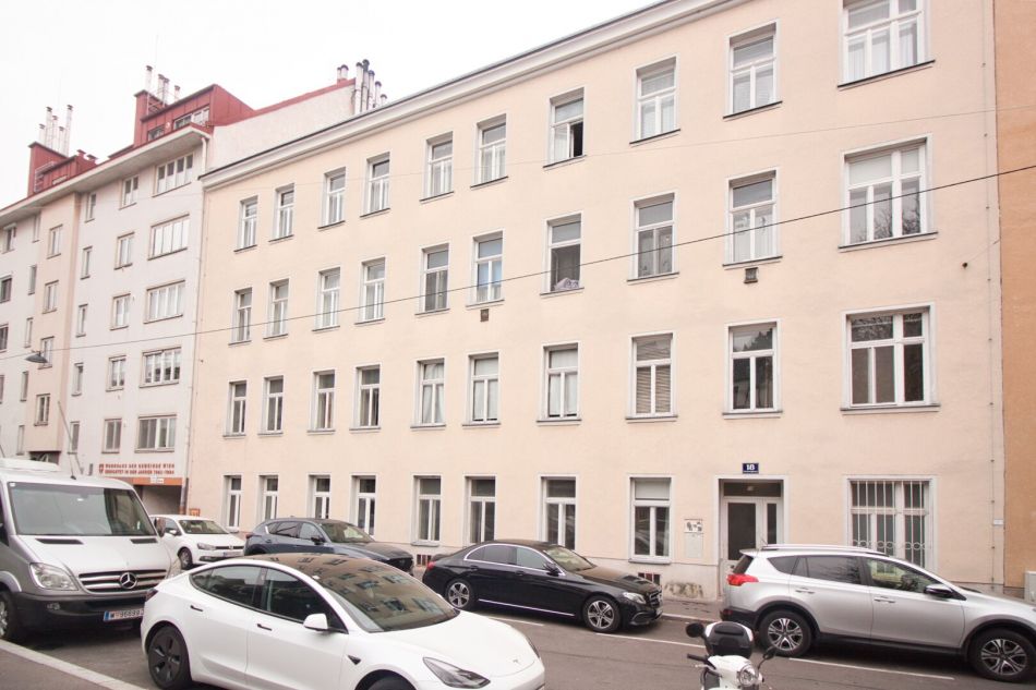 Diese 2-Zimmer-Wohnung befindet sich in einem klassischem Altbau im 1. Stock mit Lift. Die Wohnung ist in einem gepflegten Zustand und kann sofort bezogen werden. Der Vorraum bietet Platz zum Ankommen und für eine Garderobe. Direkt beim Eingang befindet sich ein separates WC mit Handwaschbecken und gegenüberliegend das hofseitige Schlafzimmer in Richtung Osten.