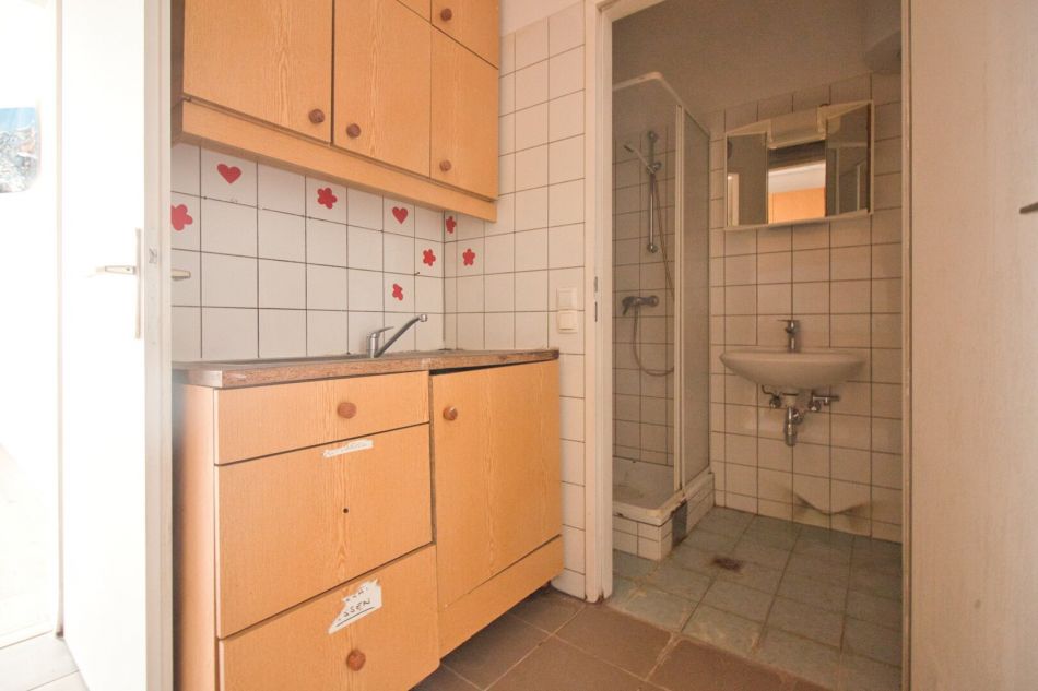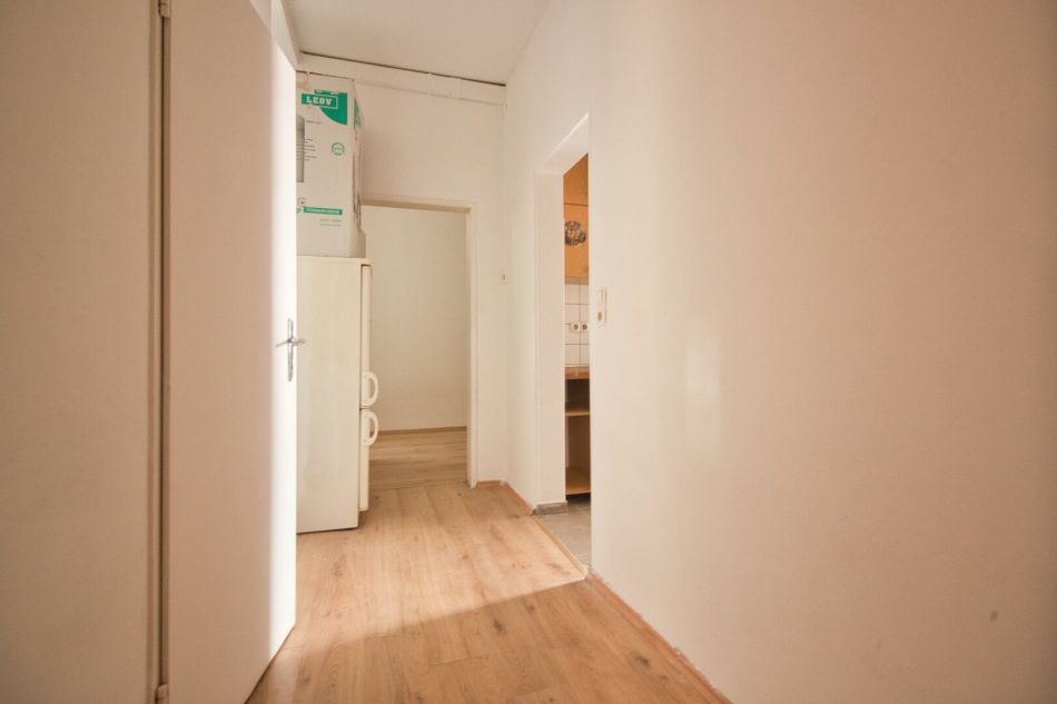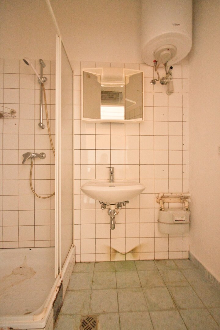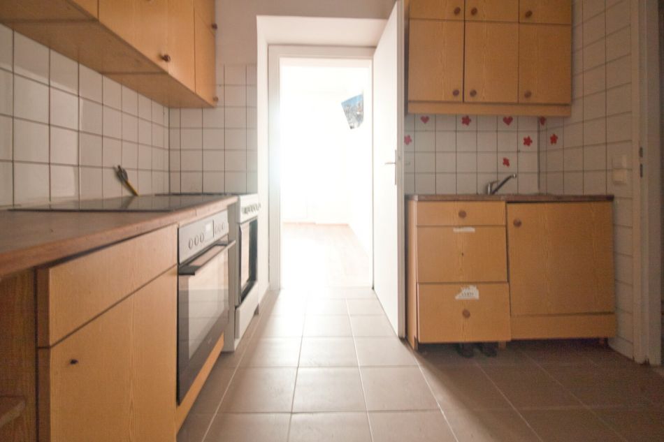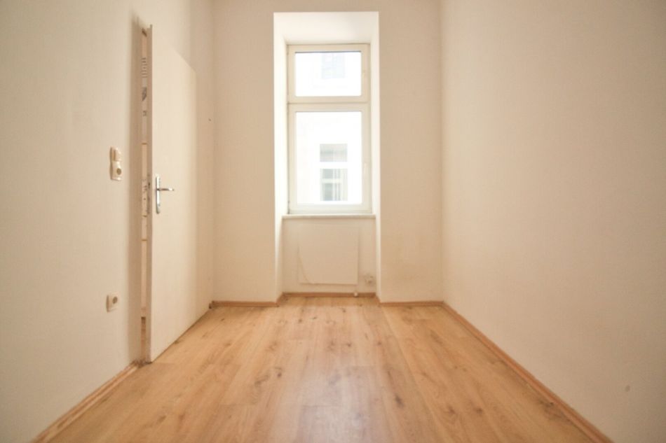 Die Wohnung befindet sich im 1. Stock OHNE Lift. Sie ist in einem leicht renovierungsbedürftigem Zustand. Der Vorraum erschließt das separate WC mit Fenster, das Kabinett sowie die Küche mit dem danebenliegenden Bad. Über die Küche gelangt man weiter in das Wohnzimmer. Alle Räume sind in den ruhigen Innenhof orientert.