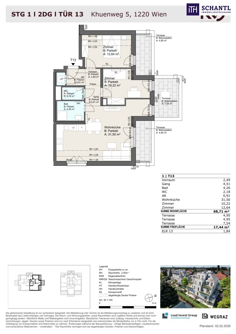 Wohnfläche: ca. 68,71m² + 3 Terrassen: ca. 17,44m² + Kellerabteil: ca. 1,84m²