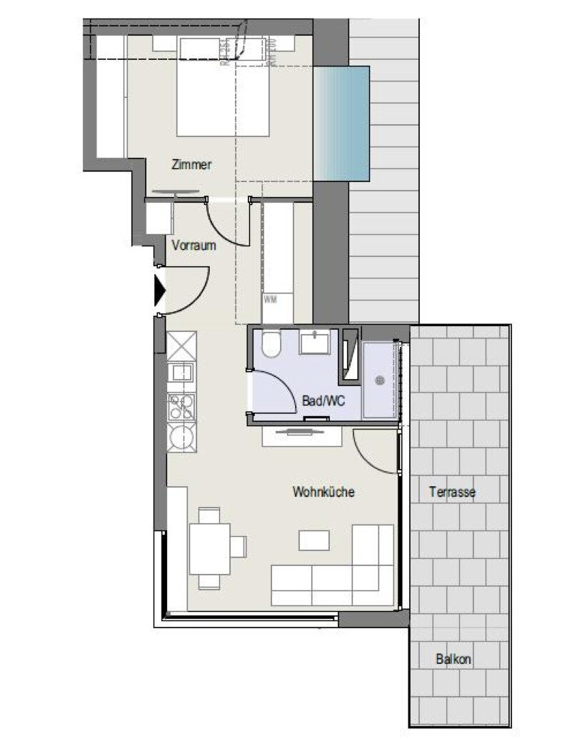 Das Highlight der Wohnung stellt die Terrasse dar, zu welcher Sie vom Wohnzimmer aus Zugang haben!
