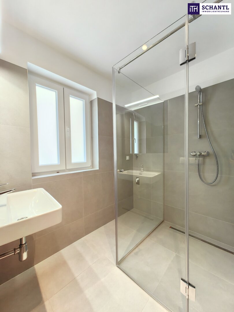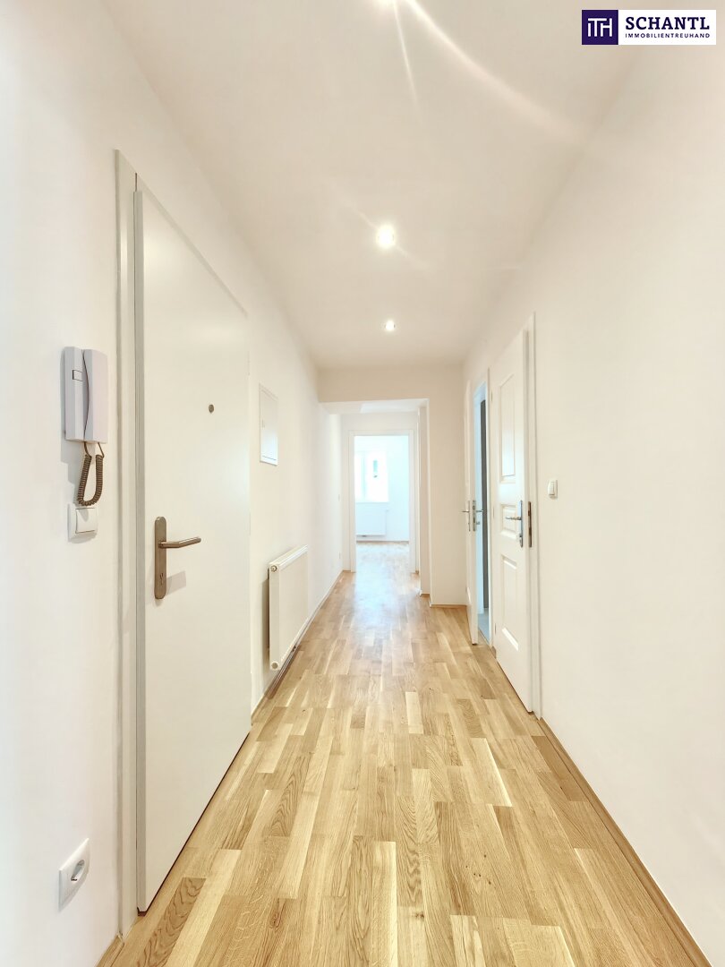 Im Zuge der umfangreichen Sanierung wurde viel Wert auf einen praktischen und gut durchdachten Grundriss gelegt. Gleich im Eingangsbereich befinden sich das WC sowie das geschmackvolle Badezimmer. Die beiden Schlafzimmer sind getrennt vom Vorraum aus zu begehen. Auch die Wohnküche überzeugt durch ihre Großzügigkeit sowie Helligkeit.