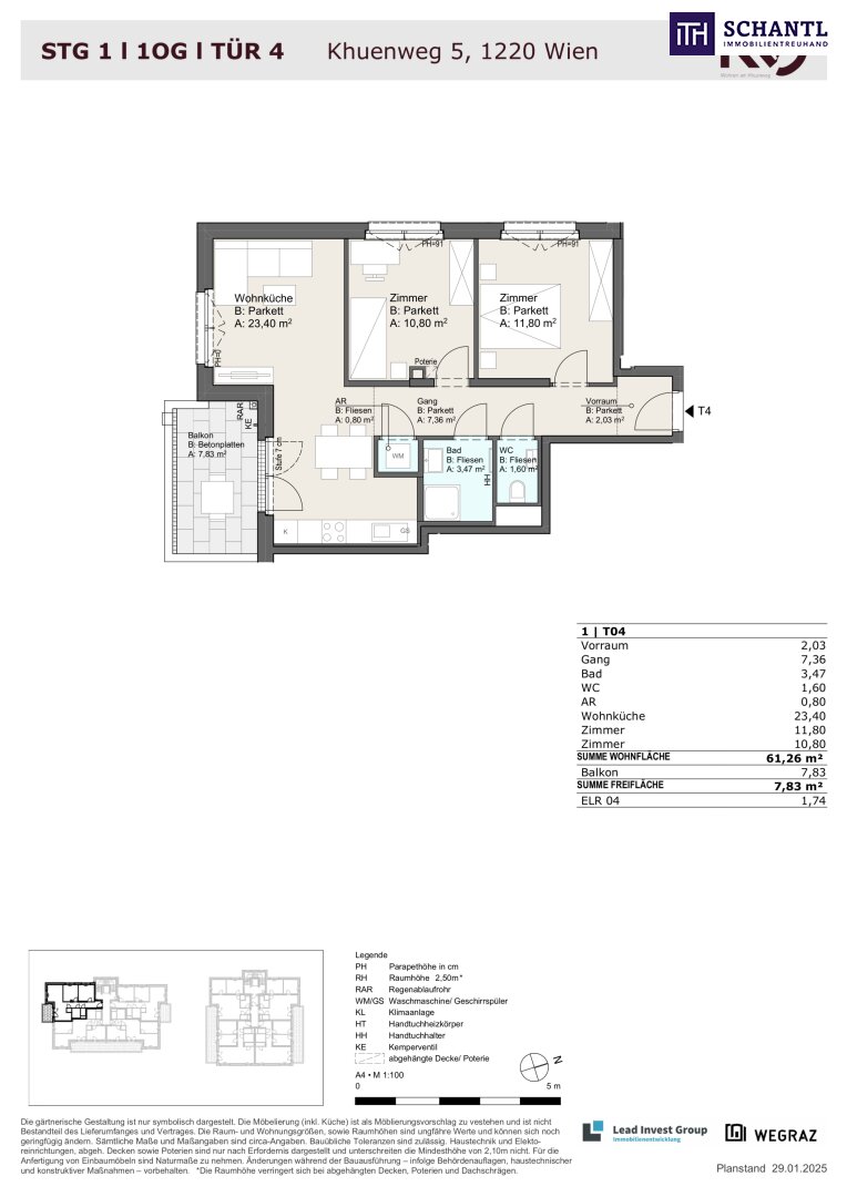 Wohnfläche: ca. 61,26m² + Balkon: ca. 7,83m² + Kellerabteil: ca. 1,74m²