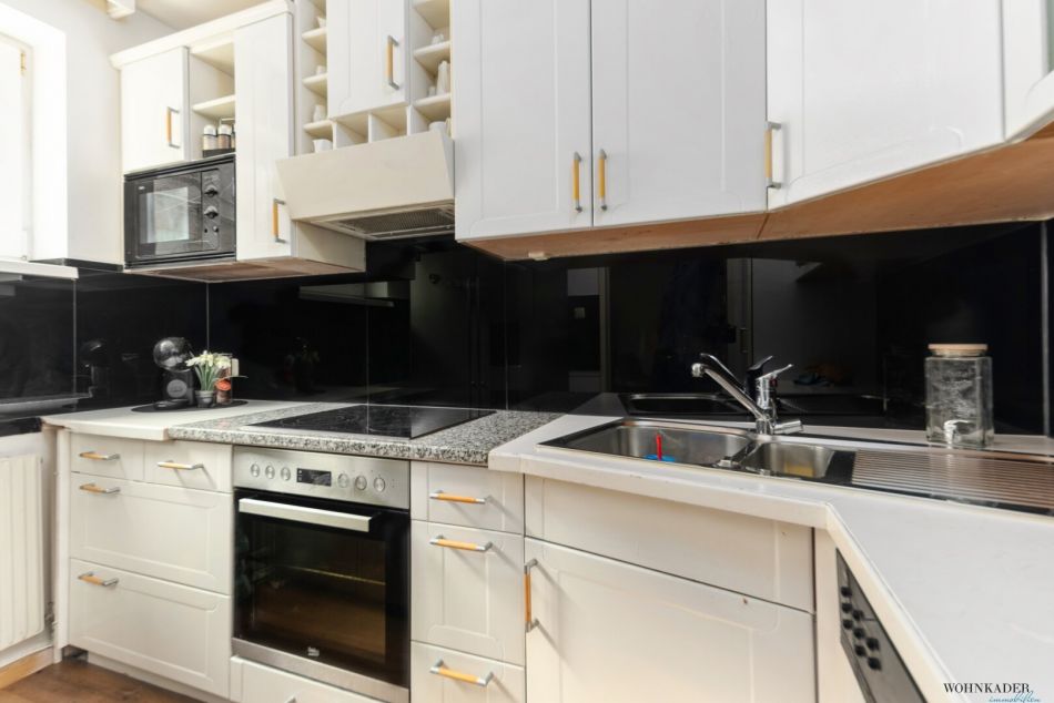 Im Wohnzimmer angekommen, genießen Sie viel Platz im lichtdurchfluteten Raum. Die Küche erreichen Sie aus dem Wohnzimmer; sie ist vollständig eingerichtet und mit allen Geräten ausgestattet. Nach Osten orientiert, bietet das Zimmer die Morgensonne – ideal zum Frühstücken!