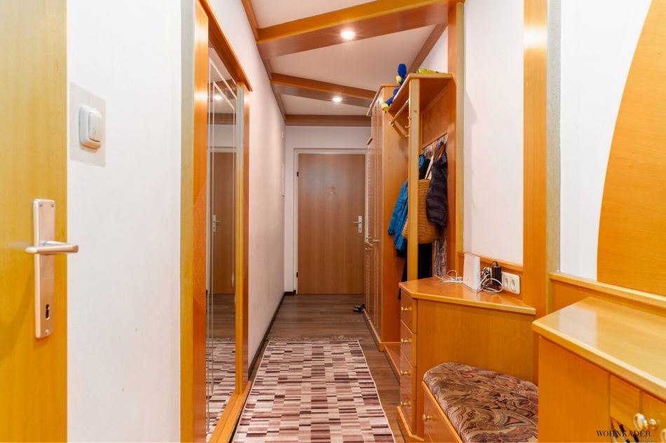 Vom Wohnzimmer aus erreichen Sie den Flur, der zu den zwei Schlafzimmern und zum Badezimmer führt. Das Badezimmer wurde wunderschön saniert.