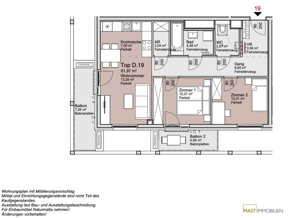 PROVISIONSFREI für den Käufer!Alle verfügbaren Wohnungen finden Sie auf unserer Homepage unter www.mast-immo.at. Um Ihre Suche zu erleichtern, steht Ihnen auf unserer Projektseite www.anderschanze25.at ein Wohnungsnavigator zur Verfügung, der Ihnen hilft, sich einen Überblick über die Lage der einzelnen Wohnungen innerhalb des Komplexes zu verschaffen.