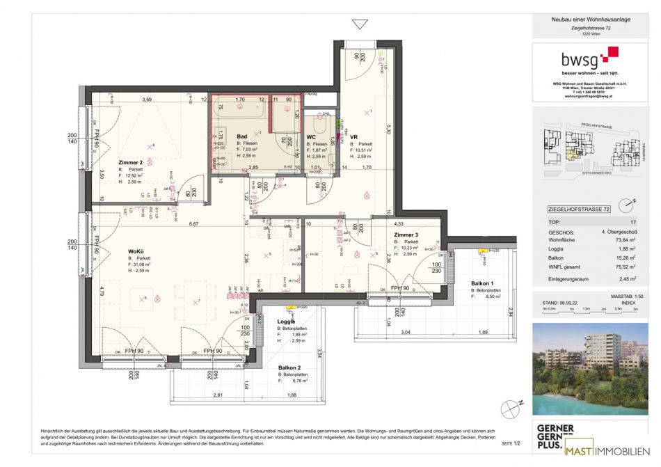 Hier wohnen Sie mit bester Lebensqualität – sofort beziehbar und zukunftssicher!Details Wohnung Ziegelhofstraße 72 Top 17: