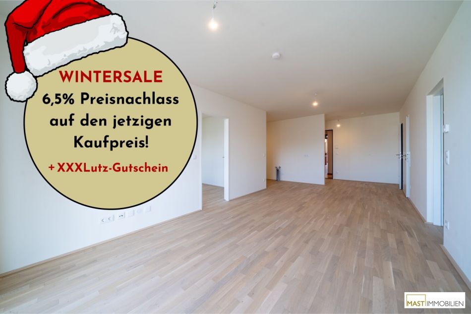 In der kalten Jahreszeit lassen wir die Preise schmelzen: Beim Kauf einer Eigentumswohnung in einem unserer Objekte in der Berresgasse ersparst du dir bis 31.3.2026 die Nebenkosten* und bekommst so jede Wohnung um 6,5% günstiger.