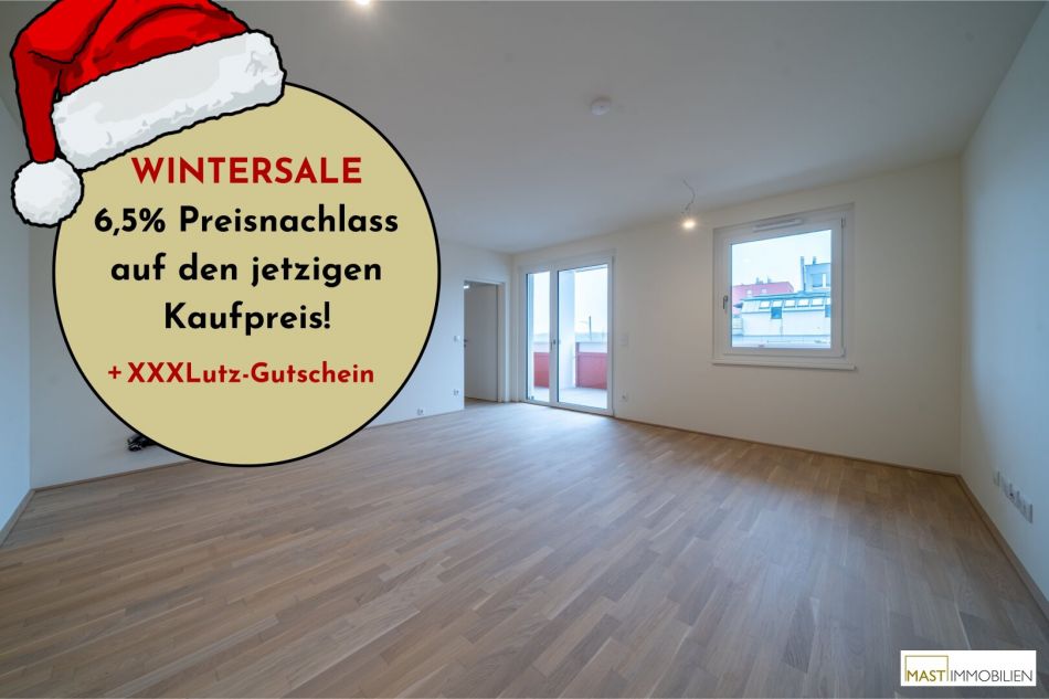 In der kalten Jahreszeit lassen wir die Preise schmelzen: Beim Kauf einer Eigentumswohnung in einem unserer Objekte in der Berresgasse ersparst du dir bis 31.3.2026 die Nebenkosten* und bekommst so jede Wohnung um 6,5% günstiger.