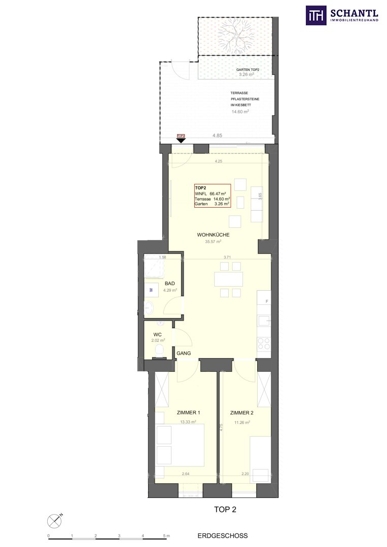 Wohnfläche: ca. 66 m² + 3 m² Garten + 14 m² Terrasse