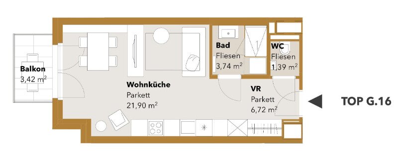 Jede Wohnung ist nicht nur mit einer Freifläche ausgestattet, sondern weißt auch hochwertige Materialien als auch Ausstattung aus: