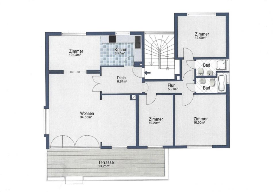 Die komfortable Wohnfläche von 109 m² wird durch eine helle, sonnige Terrasse mit einer Fläche von 23 m² wunderbar ergänzt.