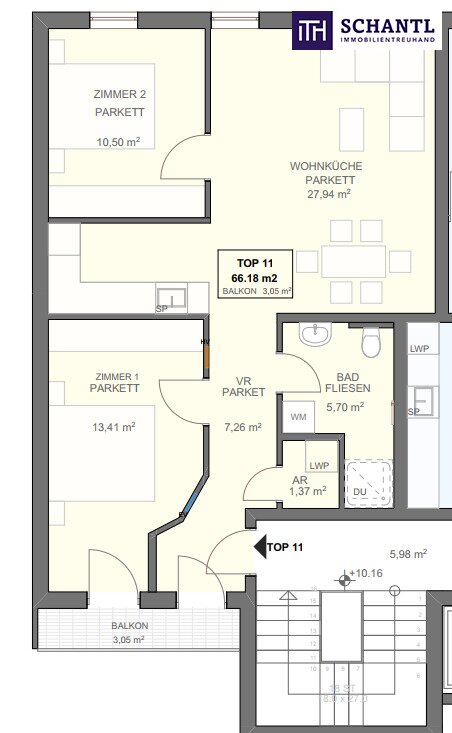 Mit einer Wohnfläche von 66,18 m² und einem 3,05 m² großen Balkon überzeugt die Wohnung durch eine durchdachte Raumaufteilung und hochwertige Ausstattung.