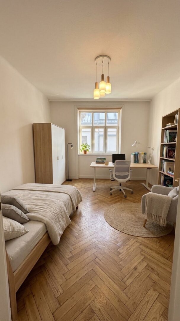 1 Zimmer mit Parkettboden (Wohn-/Schlafbereich)