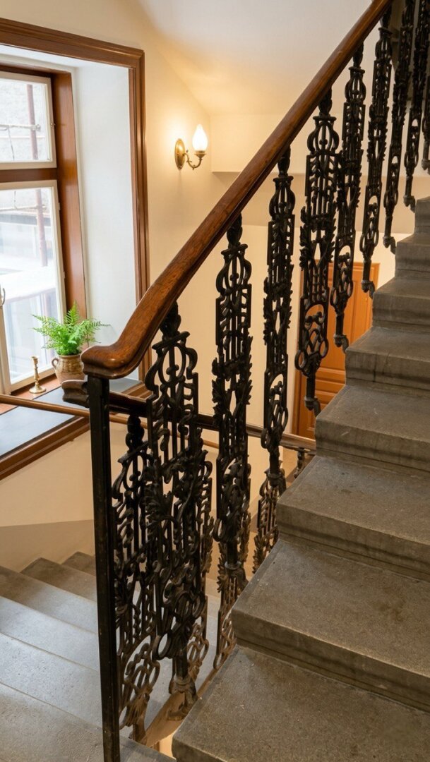 Original Jugendstil-Stiegenhaus mit gusseisernen Geländern