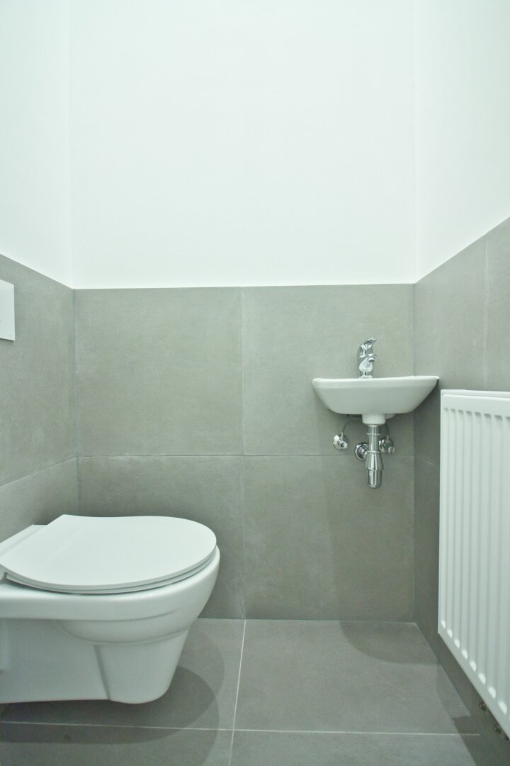 Der Vorraum bietet ausreichend Platz für Garderobe und direkt neben dem Eingang befindet sich ein separates WC mit Handwaschbecken. Vom Vorraum aus betritt man gleich die vollausgestattete Küche, in der sich auch der Waschmaschinenanschluss befindet.