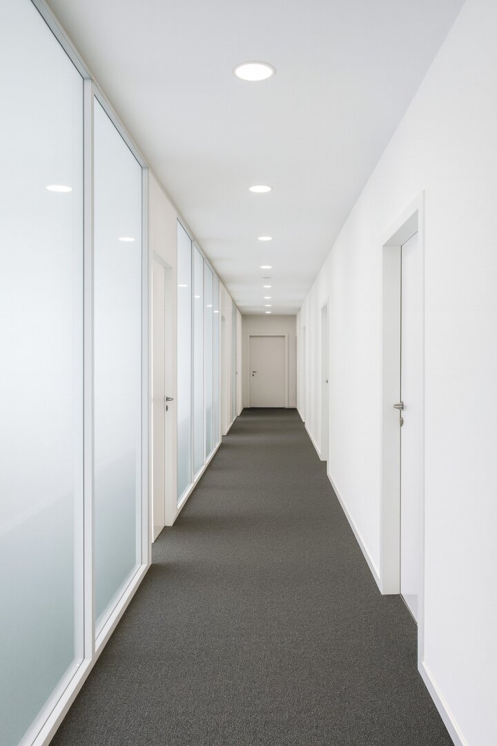 Sollten für die Büroräume Glaswände benötigt werden, erhöht sich der m² Preis der Nettomiete um 2,25.- Euro.