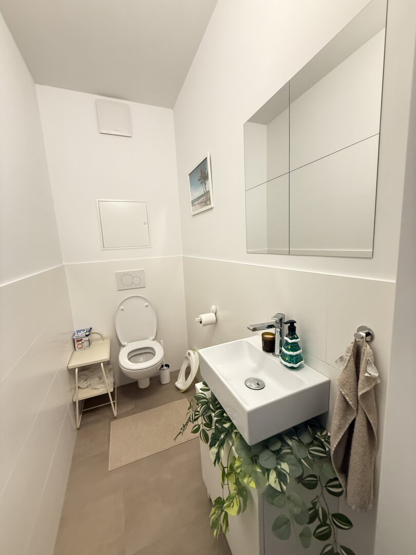 Ein Abstellraum gleich neben dem Eingang bietet zusätzlich viel Platz für Ihre Vorräte. Für Ihre Sicherheit ist gesorgt: Stahlsicherheitstür, Rauchmelder, Brandschutzvorrichtungen, etc. Abdunkeln können Sie mittels den außenliegenden Raffstores. Die Fenster sind alle dreifach-verglast und isolieren sowohl thermisch, als auch akustisch sehr gut.