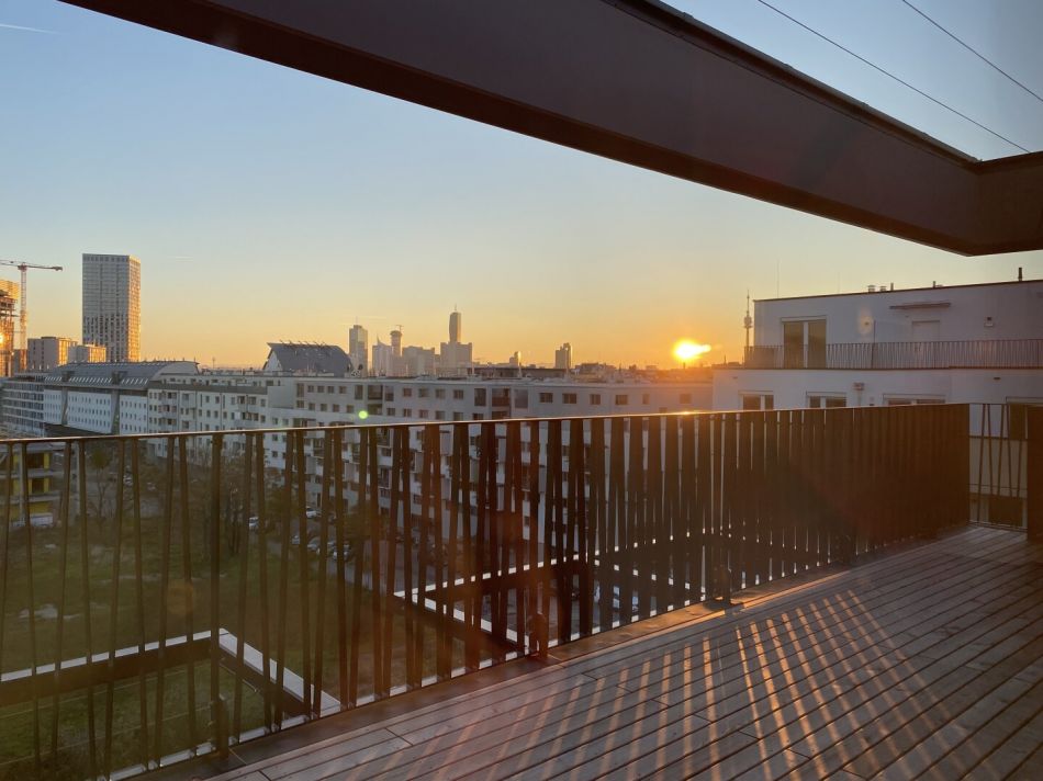Zur Vermietung gelangt hier eine sehr hochwertig ausgestattete und geschmackvolle 4 Zimmer-Wohnung mit Terrasse und Garagenstellpatz im Haus!Die Wohnung besticht durch Ihre sehr gute Wohnraumaufteilung, sehr hochwertigen Ausstattung und Bauweise. Sie befindet sich im 7. Stock / Dachgeschoss und hat eine Wohnfläche von ca. 101 m² plus eine ca. 23m² große Terrasse, sowie ein Kellerabteil, einen Tiefgaragenplatz (optional), Fahrradabstellplatz, Fußbodenheizung und Klimaanlage.