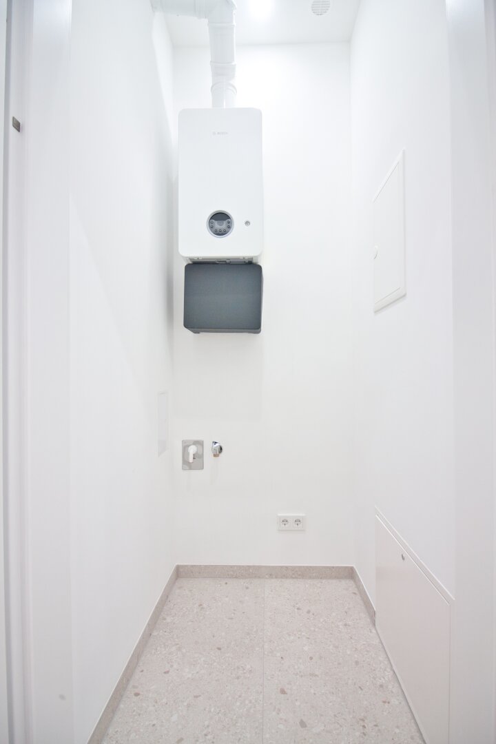 Der großzügige Vorraum bietet ausreichend Platz zum Ankommen und für Garderobe und verfügt über einen praktischen Abstellraum mit einem Waschmaschinenanschluss und der Gastherme.