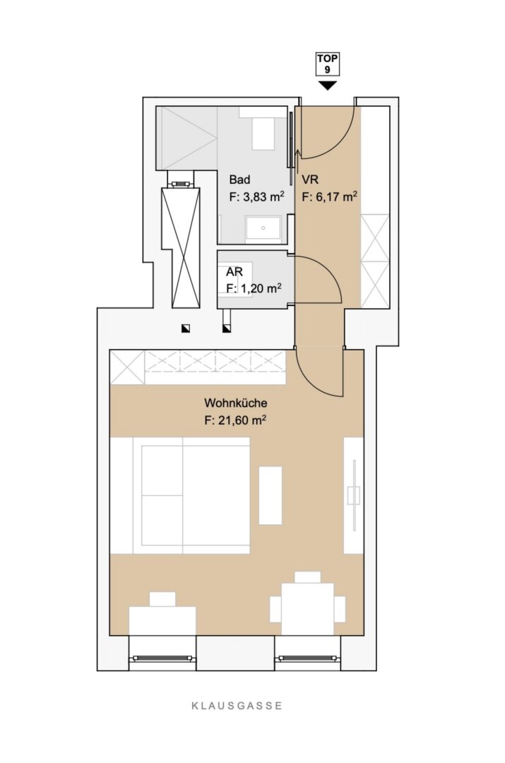 Zum Verkauf gelangt eine 1-Zimmer-Wohnung im 1. Stock eines gepflegten Wohnhauses, ohne Lift, mit ca. 33 m² Wohnfläche. Die Wohnung wurde umfangreich generalsaniert und besticht durch hochwertige Materialien und durchdachte Raumaufteilung. Sie ist zentral begehbar.